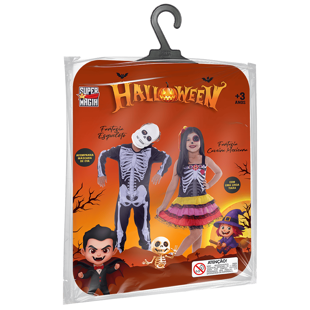 Transforme qualquer brincadeira em aventura com a Fantasia Caveira Mexicana Feminina. Feita com fibra têxtil macia, acabamento reforçado e estampa resistente, entrega conforto e durabilidade para festas, escola, Carnaval, Halloween e o dia a dia da imaginação.
