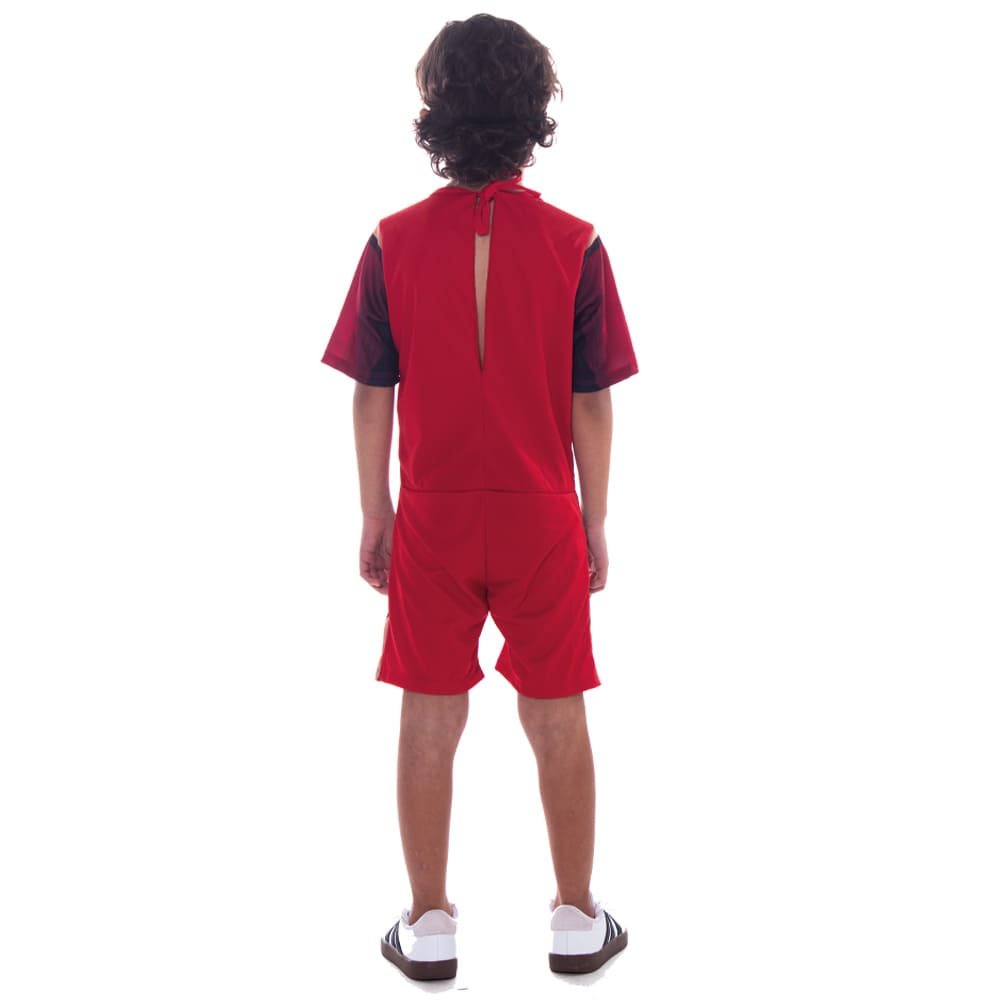 Tecido 100% poliéster, disponível nos tamanhos P, M e G (3 a 5 anos, 6 a 8 anos e 9 a 12 anos recpectivamente).