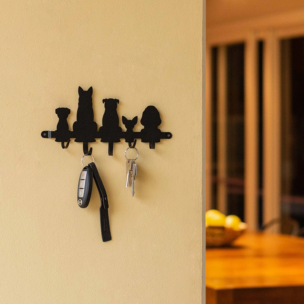 Porta-Chaves Cachorros 24 cm Preto Rugoso – 5 Ganchos